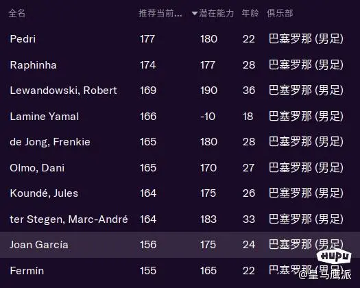 除了非固潛,巴薩最高pa才180,最高ca是佩德里177,超過170的才2個(gè),宇宙球王亞馬爾也就166,沒卡馬文加高,數(shù)據(jù)不會(huì)還停留在23-24賽季吧。