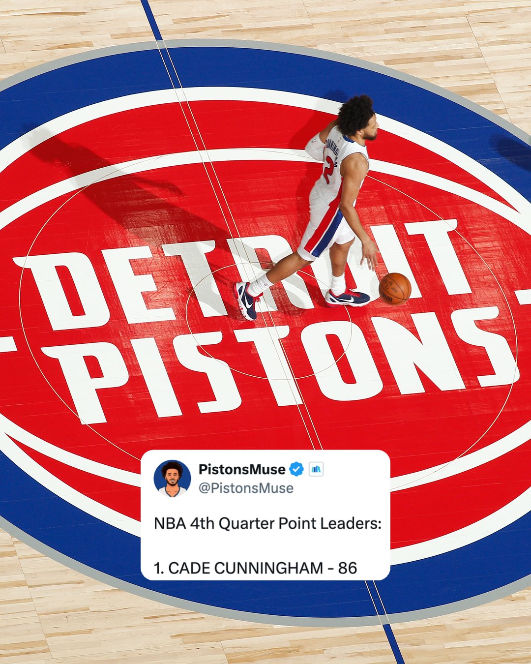虎撲11月07日訊 活塞官方更新X,曬出一張活塞球員凱德-坎寧安的目前賽場照與球迷分享。