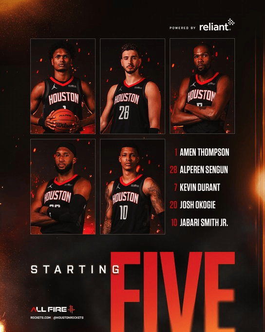 賽前,科吉火箭官方公布了首發(fā)陣容: