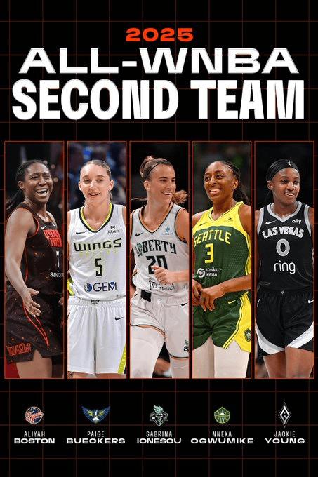 虎撲10月11日訊 WNBA更新官方社媒,公布了本賽季最佳陣容二陣的斯庫名單,具體名單如下。流言領銜