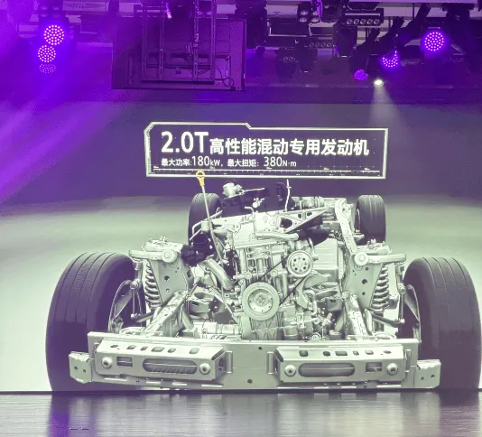 動(dòng)力方面,該車將搭載型號(hào)為E20NB的2.0T發(fā)動(dòng)機(jī)+驅(qū)動(dòng)電機(jī)組成的插混系統(tǒng),其中發(fā)動(dòng)機(jī)最大凈功率為180千瓦,峰值凈扭矩為380牛·米。