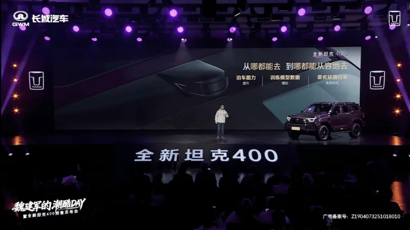 虎撲10月21日訊 長城汽車旗下全新坦克 400 今晚正式開啟預(yù)售,支持高階輔助駕駛,總?cè)餐瞥?2 款車型,新坦預(yù)售價(jià)區(qū)間 30.98-32.98 萬元。克預(yù)