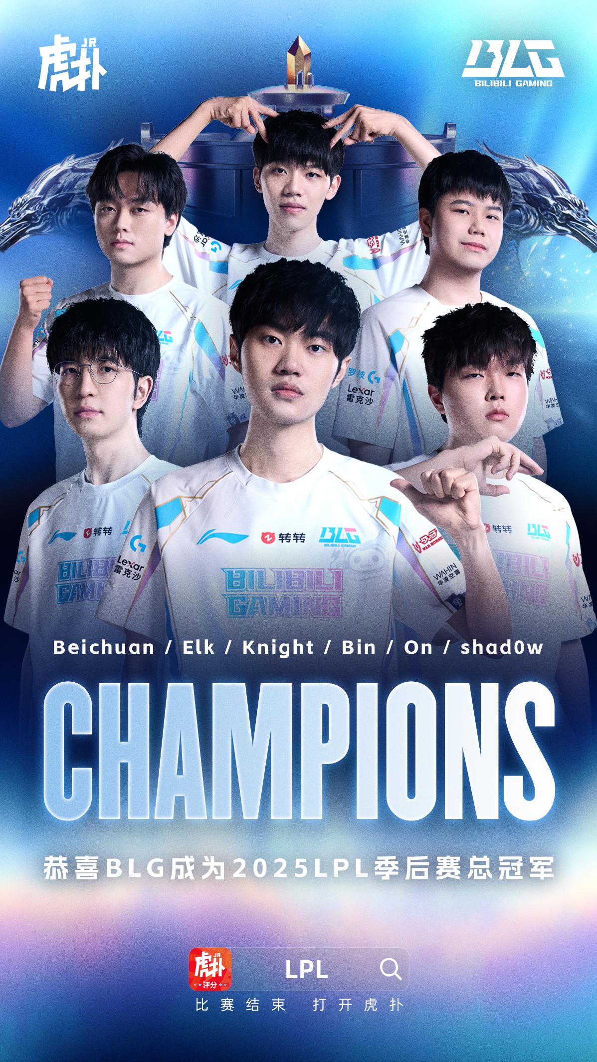 虎撲09月21日訊 2025LPL總決賽,BLG以3-2的寫傳比分戰(zhàn)勝TES,奪得2025LPL年度總冠軍。度總