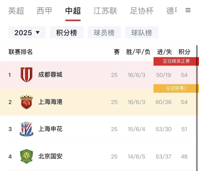 中超聯(lián)賽第26輪本周末全面打響,爭(zhēng)冠三強(qiáng)和北京國(guó)安今日出戰(zhàn)。在目前的積分榜上,蓉城、海港同積54分位列前二,申花3分之差排名第三。