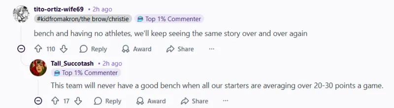 -(17贊)當(dāng)我們所有首發(fā)場均都在20–30分時,這支球隊永遠(yuǎn)不會有好的替補陣容。