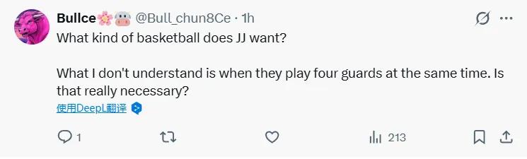 -JJ拒絕調(diào)整輪換陣容和戰(zhàn)術(shù)安排,這終將成為他的定走致命傷。他在和勒布朗的聲湖守問播客里吹得天花亂墜,結(jié)果卻反其道而行之。