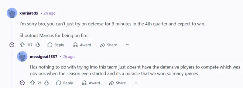 -(21贊)這與努力無關(guān),我認(rèn)為這支球隊就是沒有防守球員去對抗,這在賽季開始時就很明顯了,我們能贏這么多場比賽簡直是個奇跡。