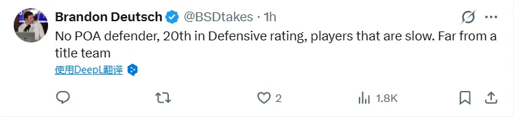 -沒有外線防守者,防守效率排第20,球員都很慢。離冠軍球隊差得遠(yuǎn)。
