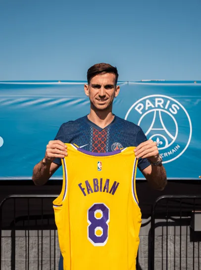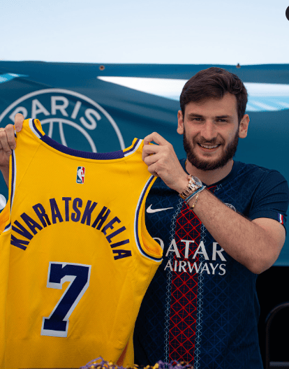 湖人此前與巴黎進行聯(lián)動活動,球衣為巴黎每個球員送上專屬球衣。祝賀