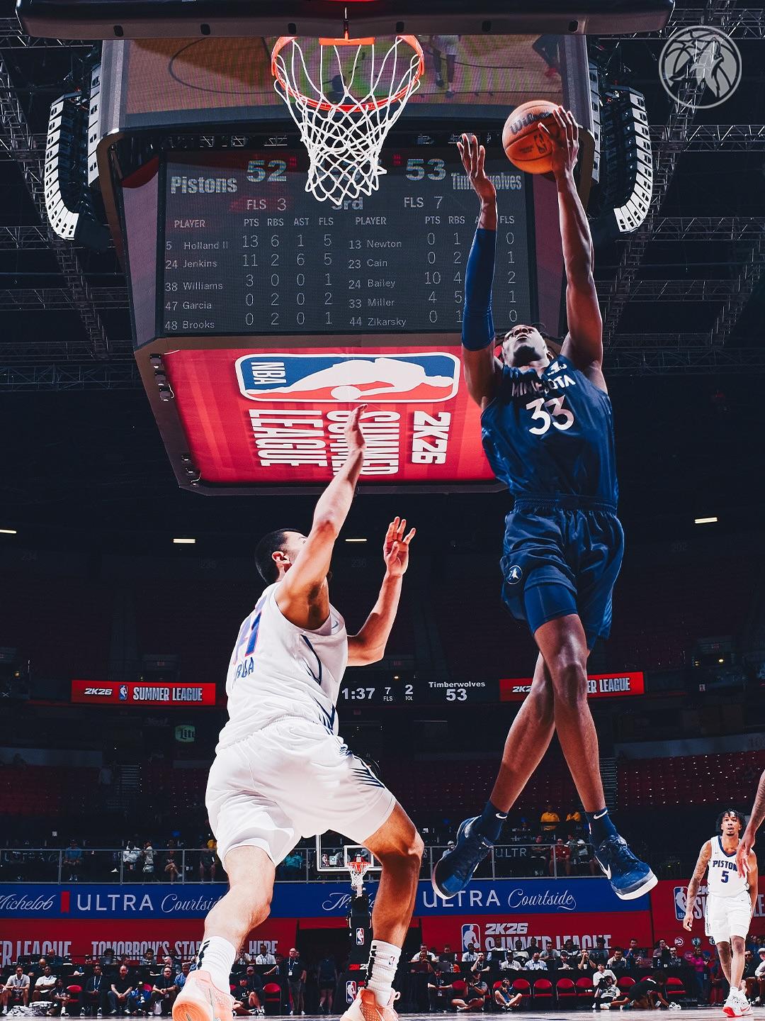森林狼球員倫納德-米勒在今年夏季聯(lián)賽中場均可以得到17.0分8.8籃板。流言倫納