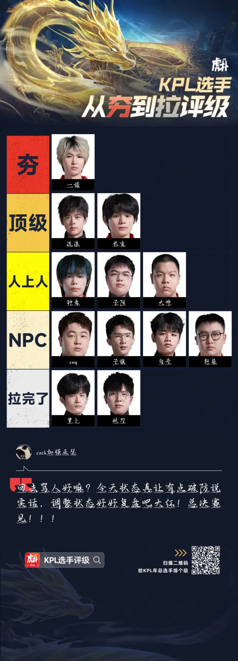 回去罵人好嘛?今天狀態(tài)真讓有點破防說實話,調(diào)整狀態(tài)好好復(fù)盤吧大紅!總決賽見!!!