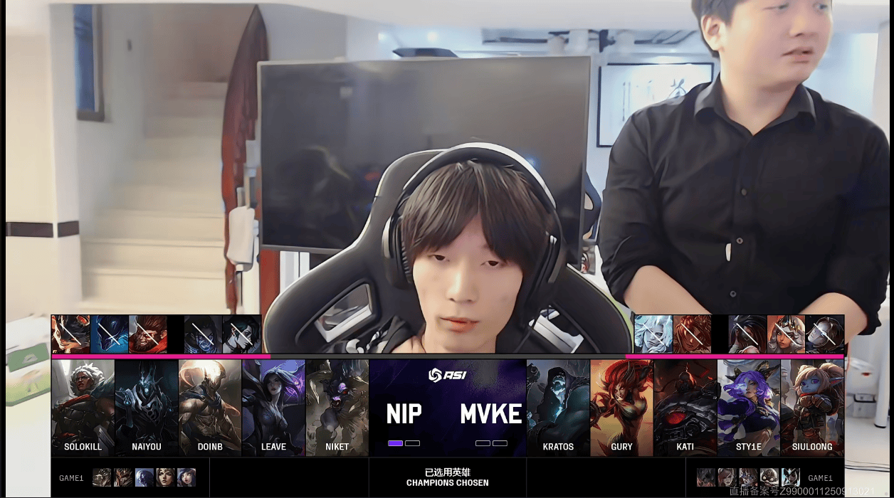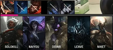 NIP選用:Solokill狼母;naiyou死歌;Doinb潘森;Leave卡莎;Niket牛頭