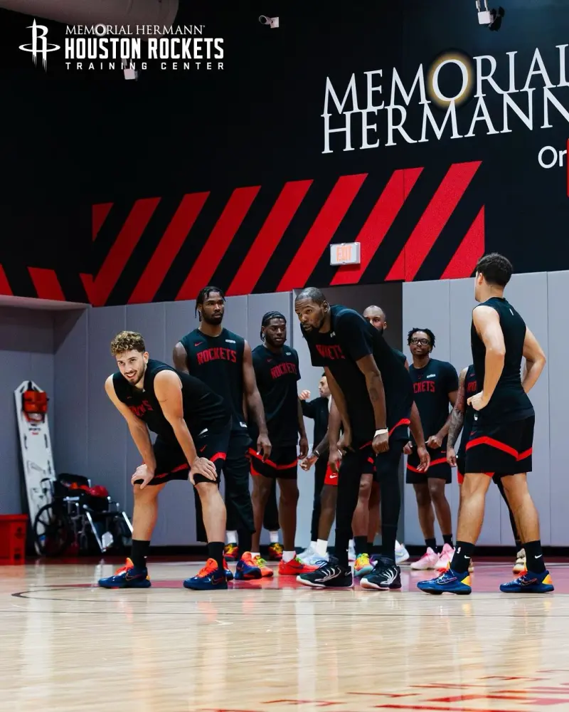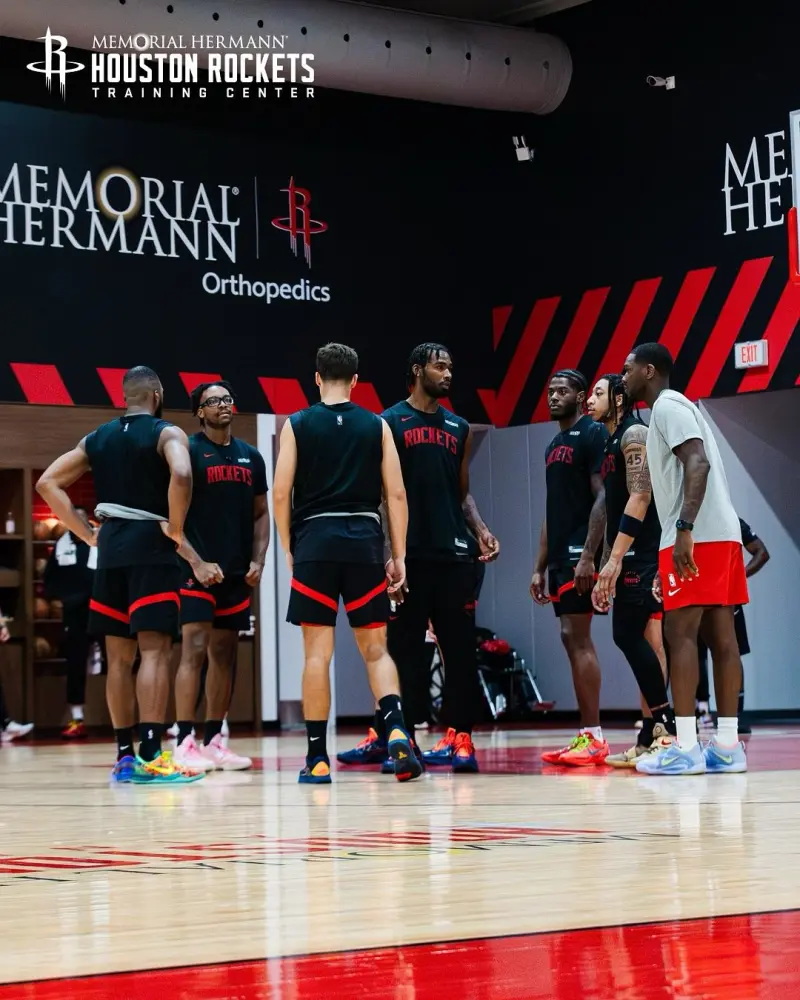 “互相磨礪??!箭官”火箭官方附文道。訓(xùn)練