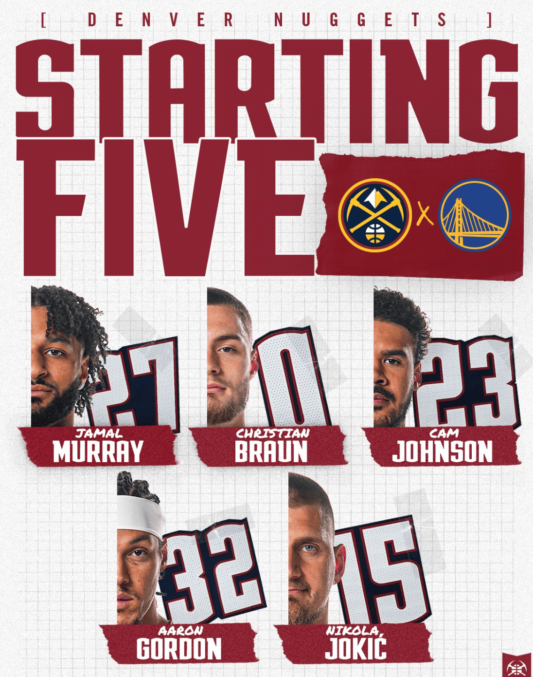 賽前,流言里布勞恩掘金公布球隊(duì)本場首發(fā)陣容:賈馬爾-默里、克里斯蒂安-布勞恩、卡梅倫-約翰遜、阿龍-戈登和尼古拉-約基奇。