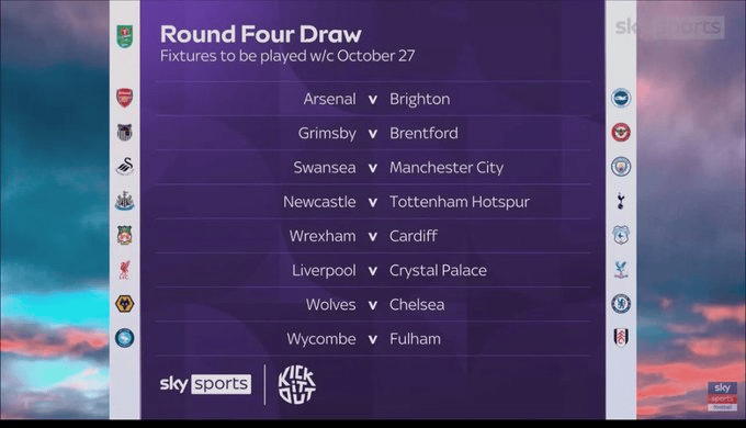 虎撲09月25日訊 聯(lián)賽杯第四輪完成全部抽簽,此輪的第輪賽程將擇日具體公開(kāi)。
