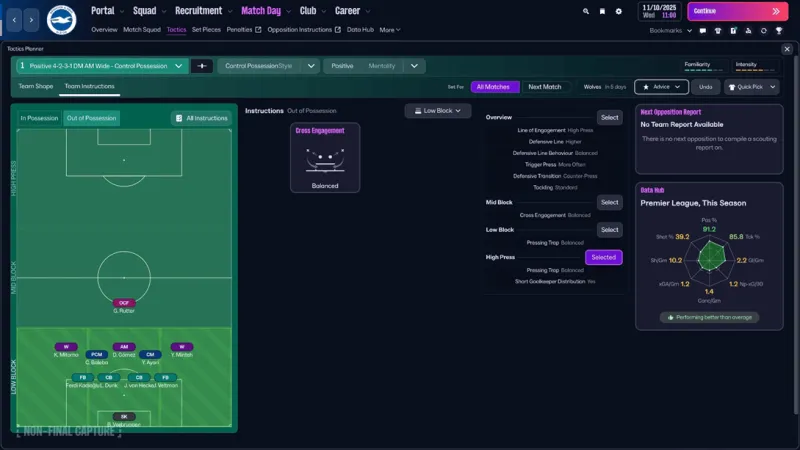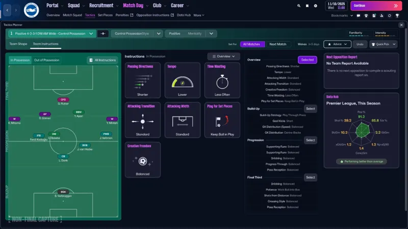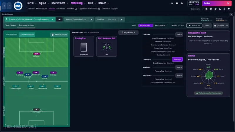 現(xiàn)在,我們榮幸地宣布,《FM26》即將加入這一玩家社區(qū)期盼已久的功能,對(duì)持球與無(wú)球階段陣型作出區(qū)分。作為本年度新作戰(zhàn)術(shù)系統(tǒng)全面升級(jí)的一部分,這一改動(dòng)將為玩家?guī)?lái)前所未有的深度、靈活度、自由度,讓戰(zhàn)術(shù)指揮更加自如。
