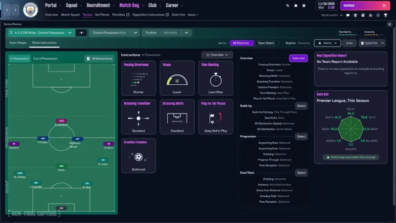 從制定球隊(duì)?wèi)?zhàn)術(shù)的時(shí)刻開始,玩家就能體會(huì)到《FM26》戰(zhàn)術(shù)選項(xiàng)的新變化。