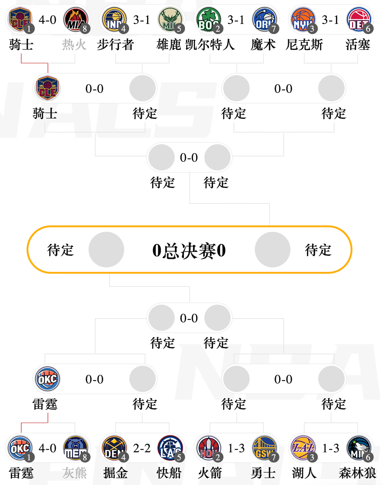 其中,雷霆橫掃灰熊,騎士橫掃熱火,率先晉級。