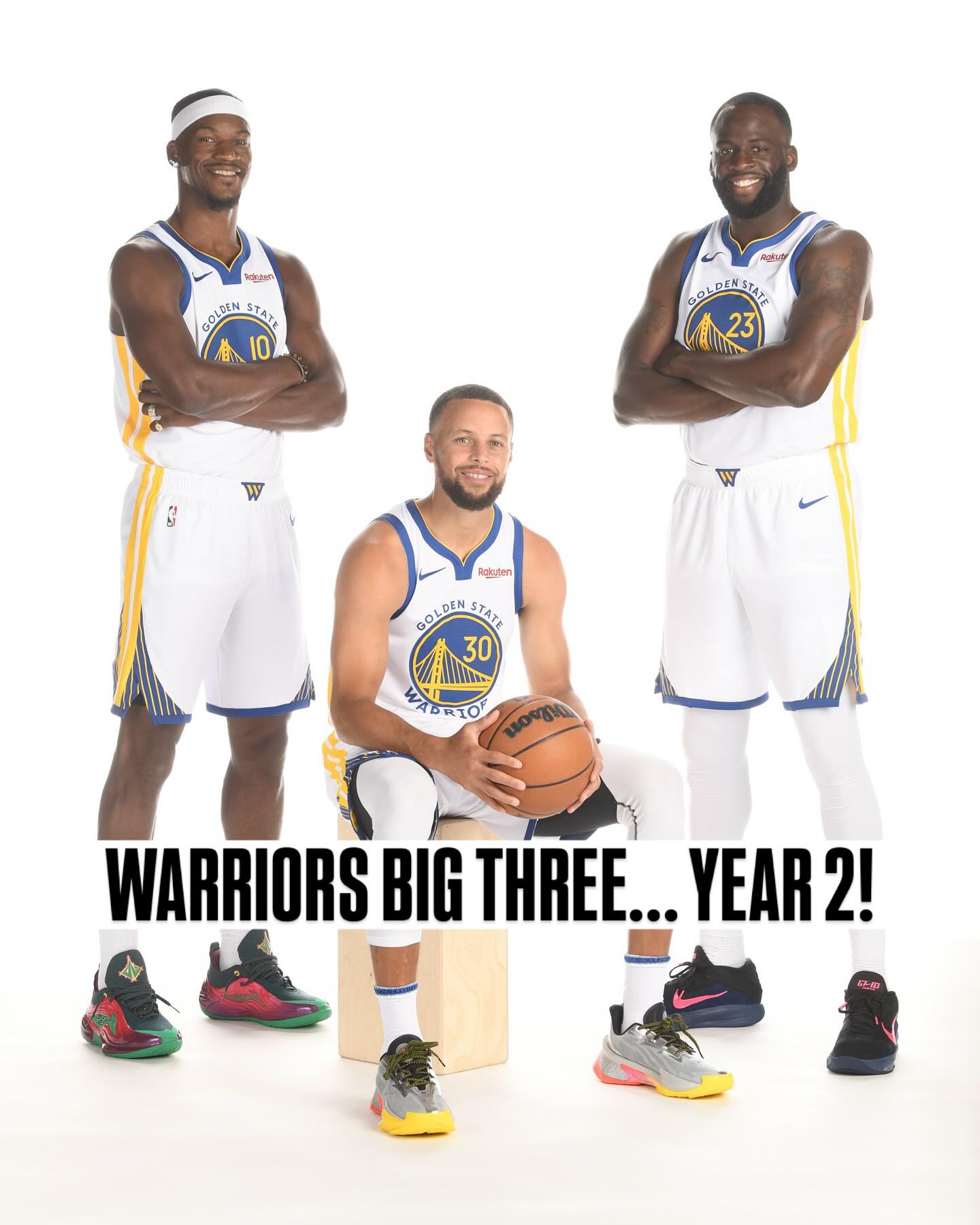 虎撲10月02日訊 NBA官方更新Ins,曬出一組勇士球員吉米-巴特勒,勇士已經(jīng)異彩斯蒂芬-庫里和德雷蒙德-格林的準(zhǔn)備定妝照與球迷分享。
