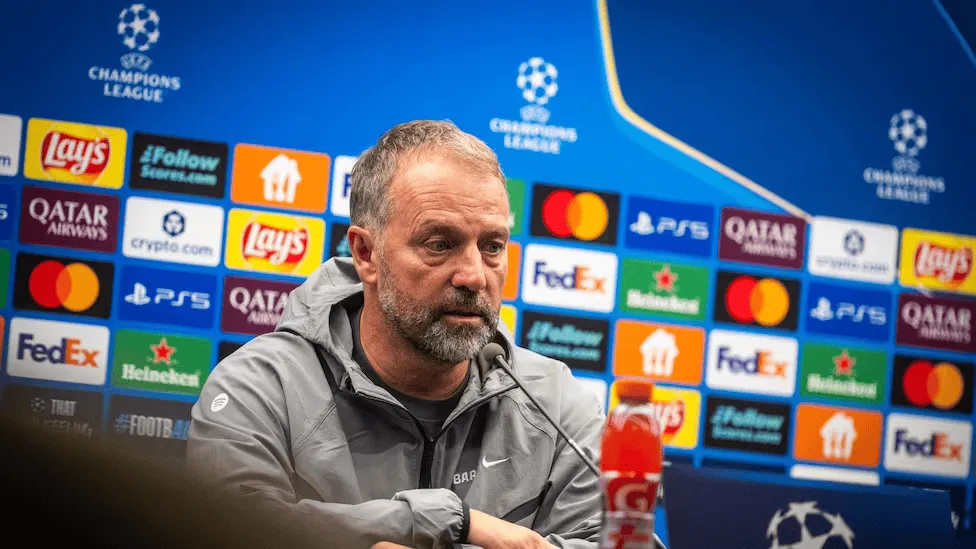 虎撲12月08日訊 巴塞羅那主教練漢斯-弗里克出席對陣法蘭克福的歐冠賽前發(fā)布會。