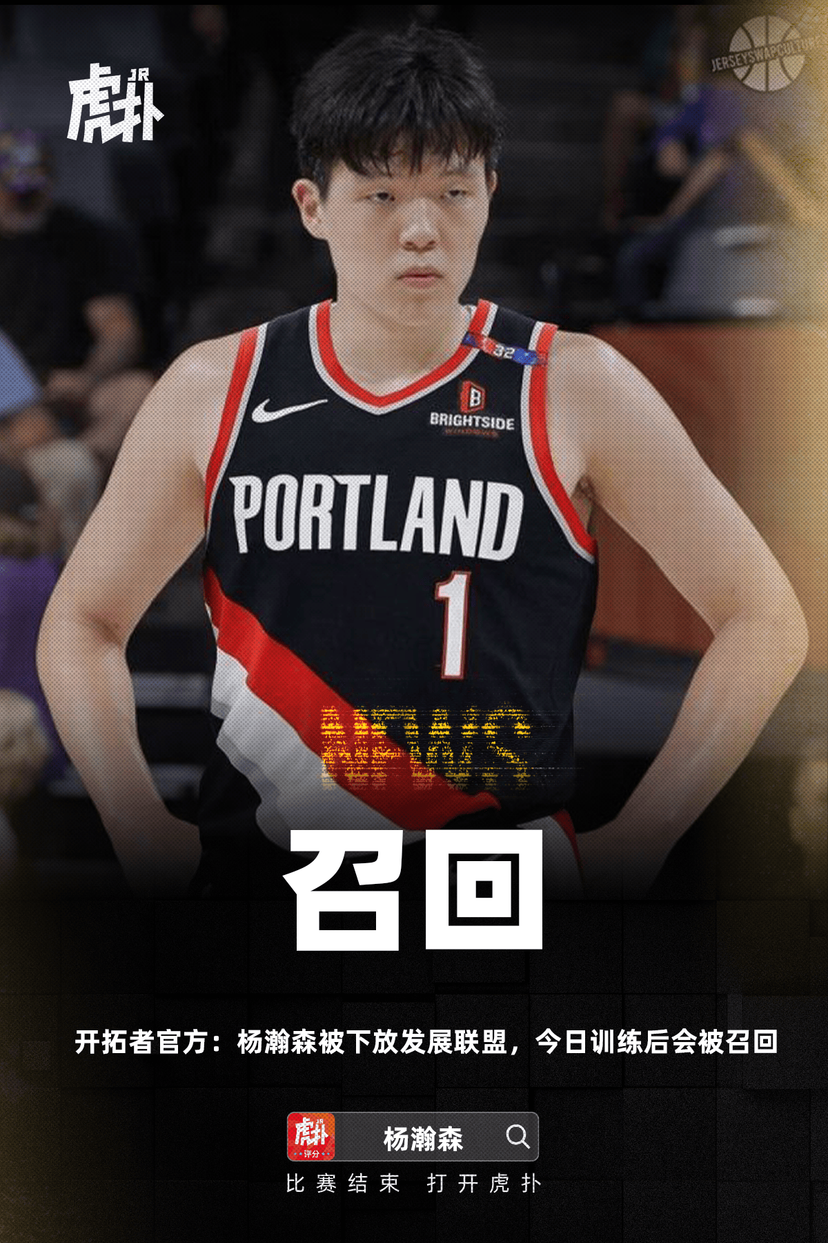 開(kāi)拓者同時(shí)表示,楊瀚在今天訓(xùn)練結(jié)束后,森被楊瀚森將被召回。下放訓(xùn)練