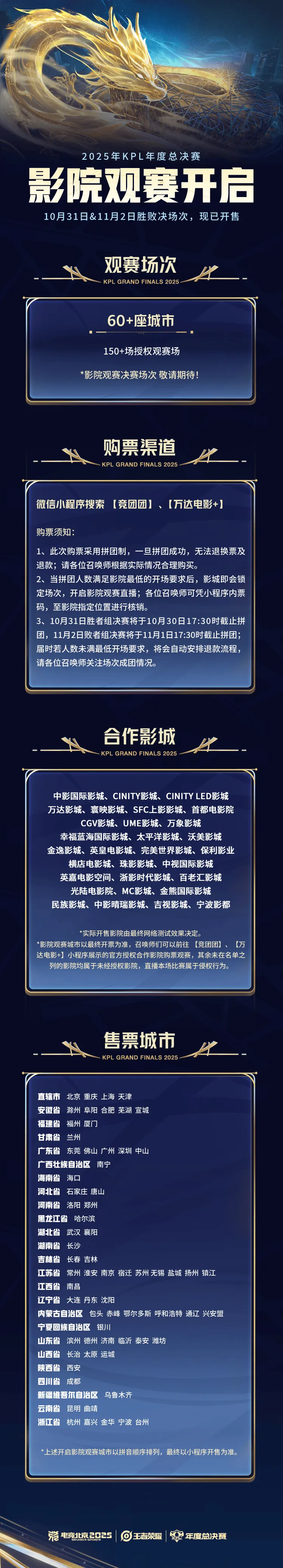 [流言板]KPL年總決賽沉浸式影院觀賽:60+座城市,150+場授權觀賽場