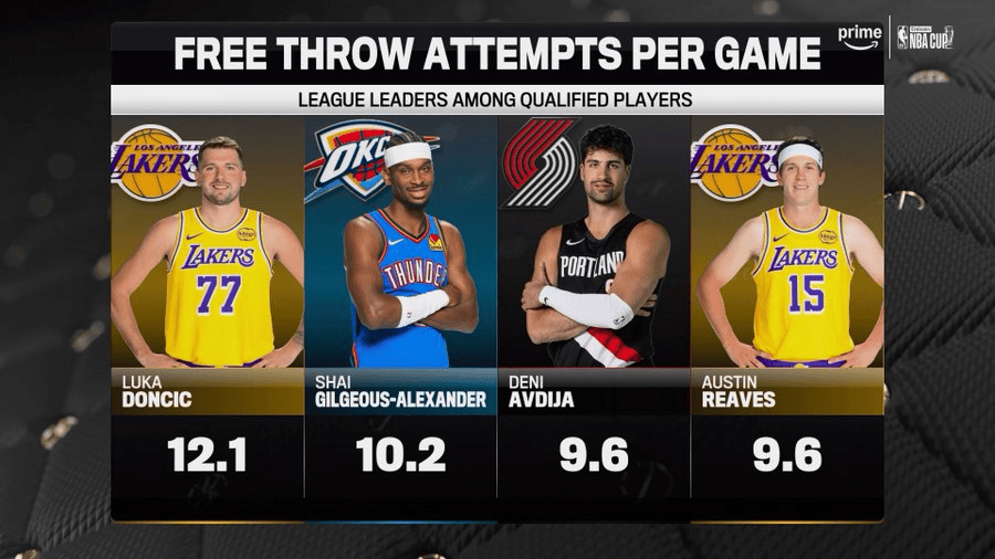 虎撲12月11日訊 今日,美媒NBA on Prime更新動(dòng)態(tài),行東曬出本賽季至今場(chǎng)均罰球次數(shù)排行。夫迪