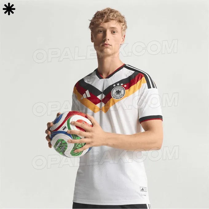 虎撲10月24日訊 世界杯預選賽將于今年秋季拉開帷幕,但德國隊參加2026年美國、墨西哥和加拿大世界杯的球衣已經確定。新照片展示了2026年版球衣的造型,懷舊球迷有福了。?“Footy Headlines”揭曉了明年夏天德國國家隊的球衣外觀。