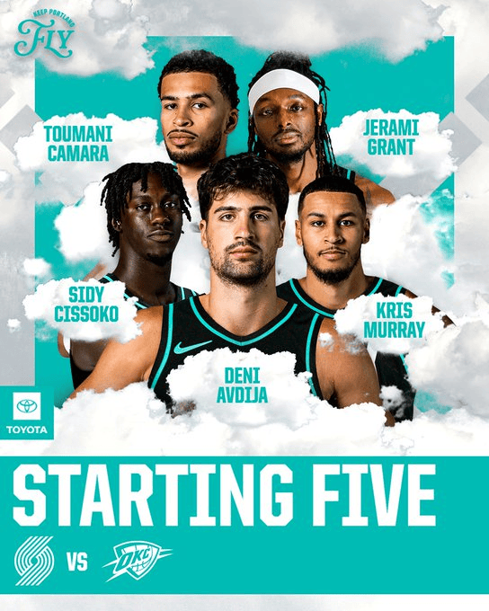 開拓者本場首發(fā):德尼-阿夫迪亞、西索杰拉米-格蘭特、圖馬尼-卡馬拉、西迪-西索科、克里斯-默里。