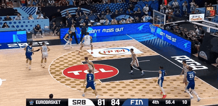 第四節(jié)比賽,奇分瓦爾托寧迎著約基奇三分再中,再中芬蘭領(lǐng)先6分剩50秒。芬蘭分剩