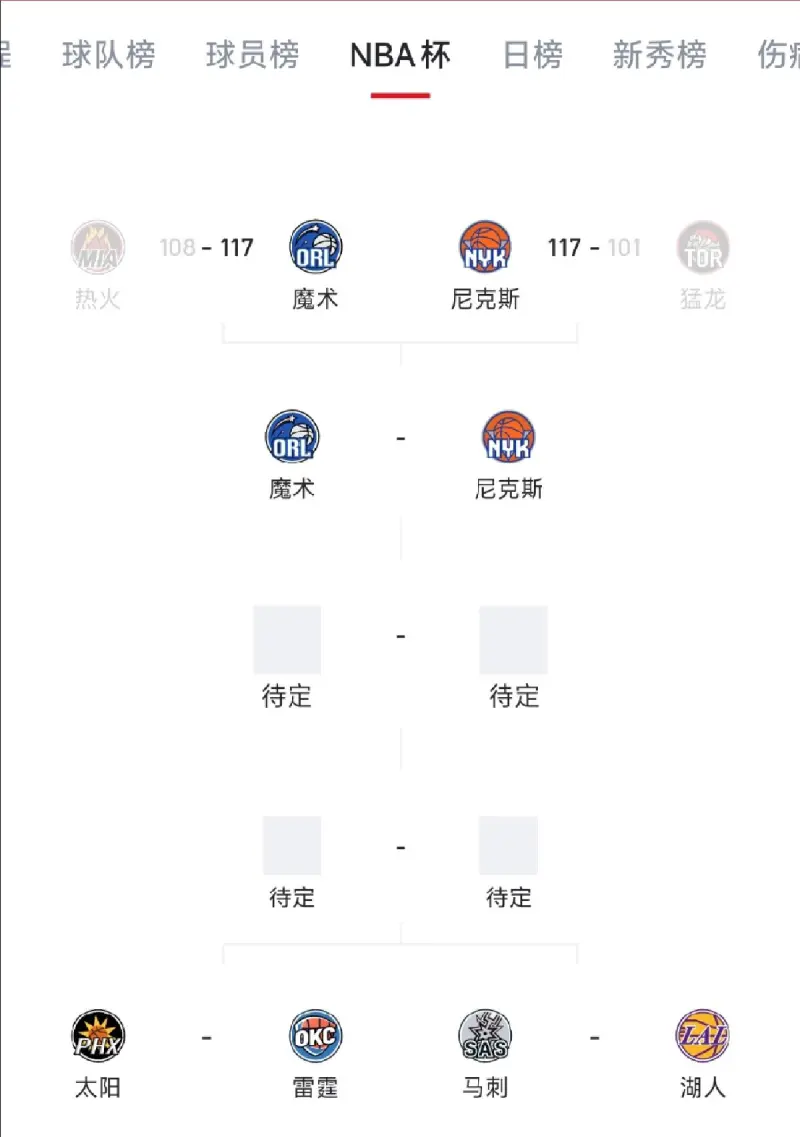 本場取勝后,板尼A杯半決尼克斯將在NBA杯半決賽對陣魔術(shù)。克斯客場