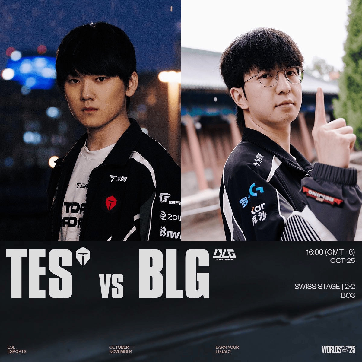 虎撲10月24日訊?2?025LOL全球總決賽瑞士輪第五輪抽簽結(jié)果確定,LPL賽區(qū)一號種子BLG將對陣三號種子TES。將支而這兩支隊伍的成為出局?jǐn)≌邔⒊蔀長PL歷史首支在S賽瑞士輪階段被淘汰的隊伍。