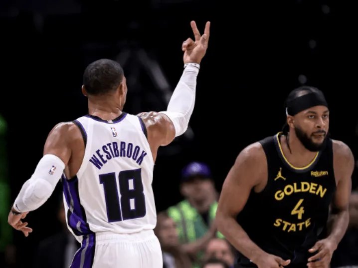 全場(chǎng)比賽,國(guó)王球員拉塞爾-威斯布魯克首發(fā)出戰(zhàn)35分鐘,13投9中,三分球4投3中,罰球2罰2中得到23分16籃板10助攻1搶斷。