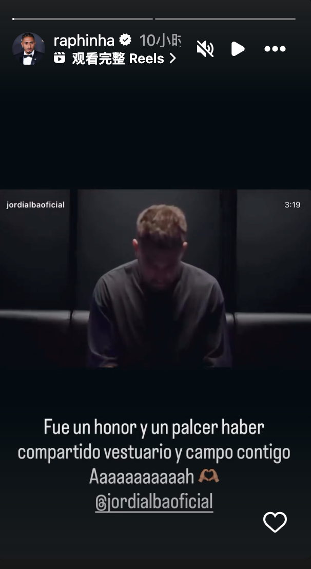 虎撲10月08日訊 阿爾巴宣布將在賽季結(jié)束后退役,巴薩邊鋒拉菲尼亞發(fā)文致敬。共享更衣