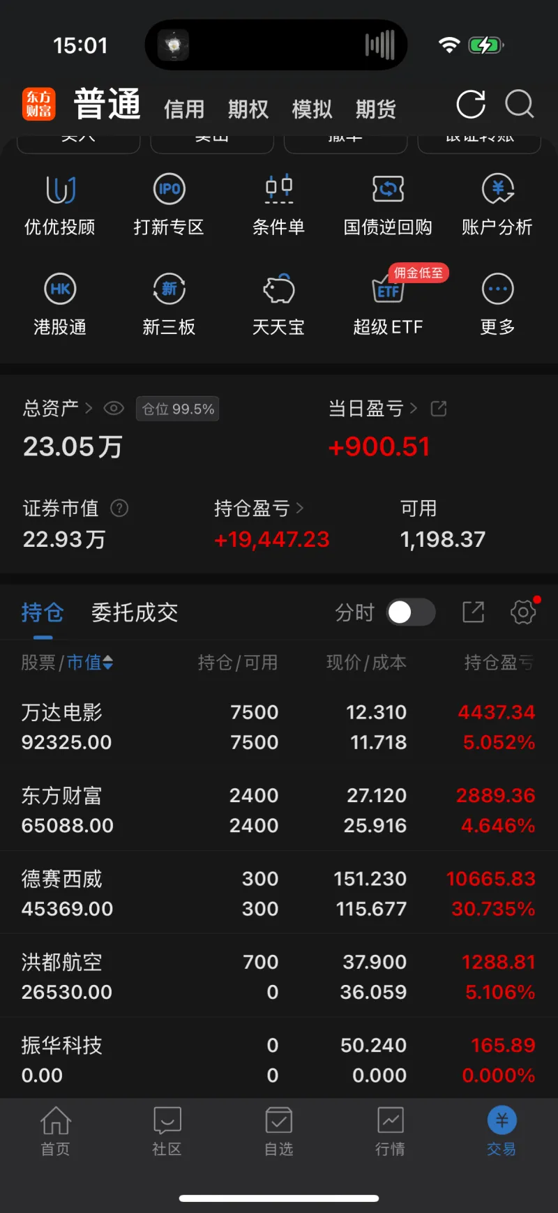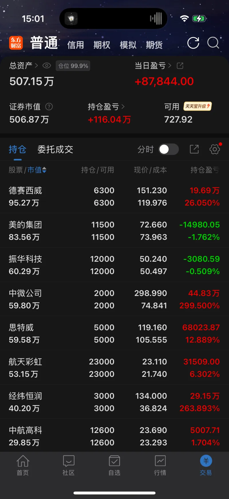 2)軍工三子:太好啦,這次又是經(jīng)典選到了后排。沈飛、洪都、彩虹、高科、振華。5選3又是選到了后面三個后排,我真棒。早盤本來打算去弱留強把振華切洪都,但是大號振華水下不想切了影響我做票成功率。就用小號把振華切去洪都了,成功拿下5%,雖然賺的不多但對這波操作非常滿意,小號就仿佛就是我的實驗田。振華感覺有什么東西壓盤,無所謂嘛。主力那么多資金可以接受不賺,我才幾十萬陪你一起熬也沒問題。彩虹表現(xiàn)不錯,繼續(xù)好看;中航高科是那種很穩(wěn)健有基本面的票,啟動了也是趨勢票,慢一點給他一點耐心。