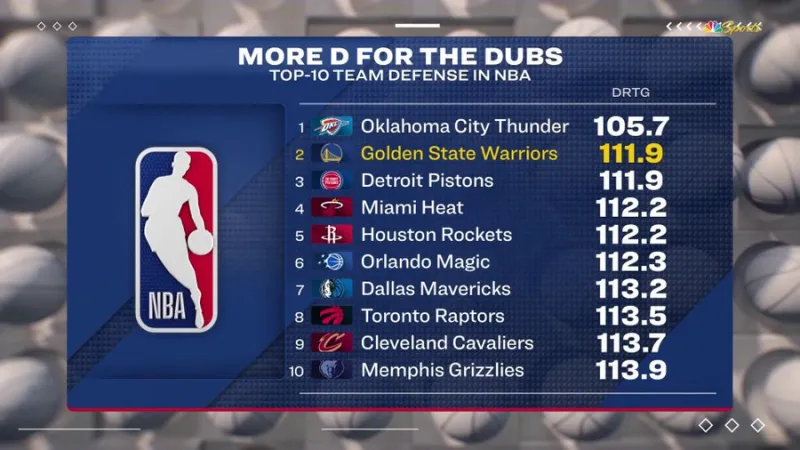 另外,勇士的防守效率已來到聯(lián)盟第二,僅次于雷霆。