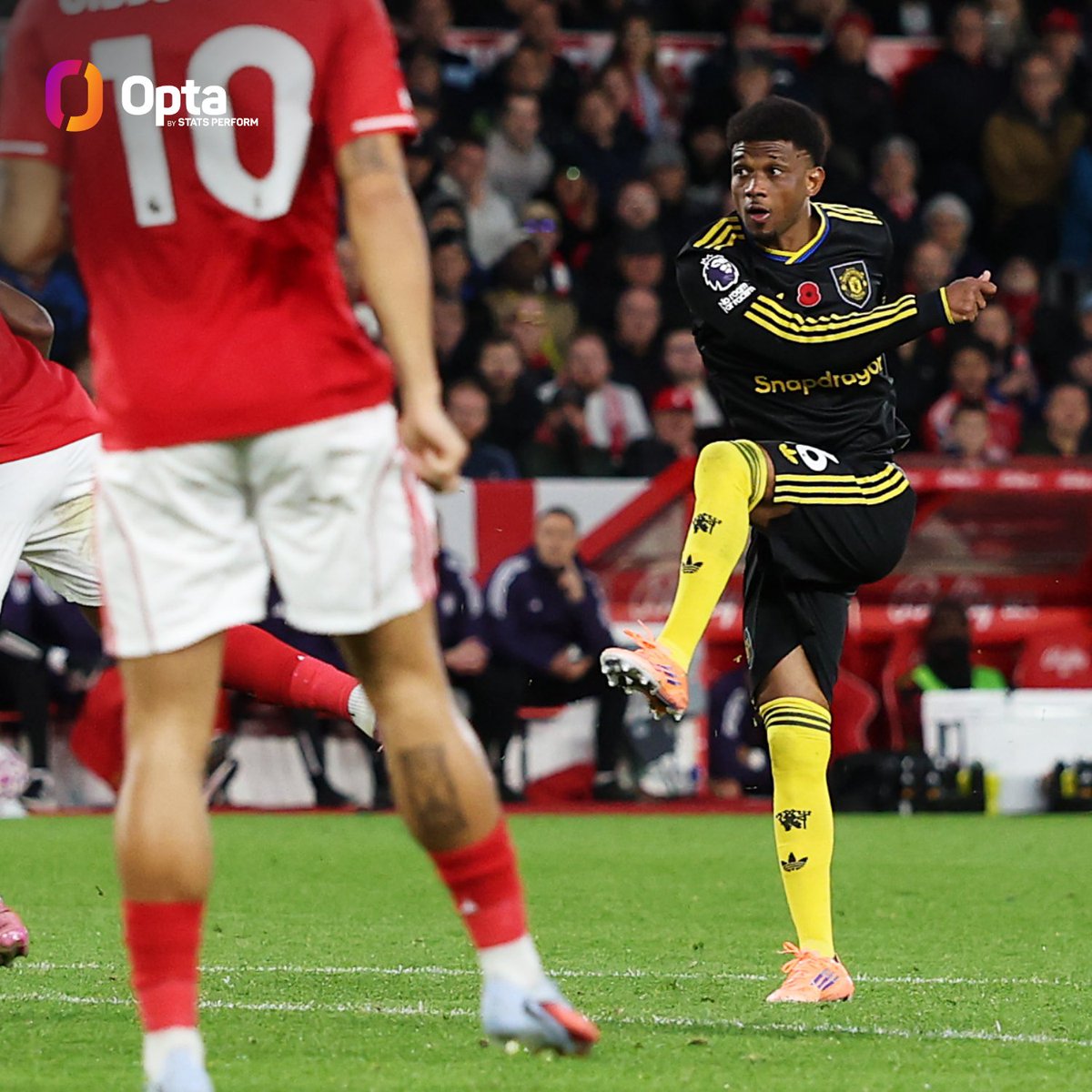 虎撲11月02日訊 英超第10輪,曼聯(lián)客場2-2戰(zhàn)平諾丁漢森林,奇紀(jì)球都阿瑪?shù)?迪亞洛在下半場為曼聯(lián)打進(jìn)的瑪?shù)掳馄降倪M(jìn)球。