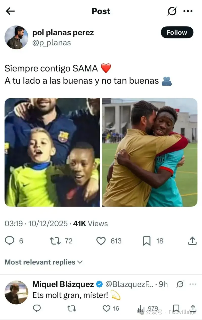 青年隊主教練普拉納斯應該長期帶諾莫科,發(fā)貼鼓勵球員。