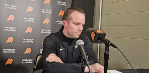 虎撲10月26日訊 NBA常規(guī)賽,太陽111-133不敵掘金。賽后,太陽主帥喬丹-奧特接受了采訪,談到了德文-布克出現(xiàn)9次失誤。