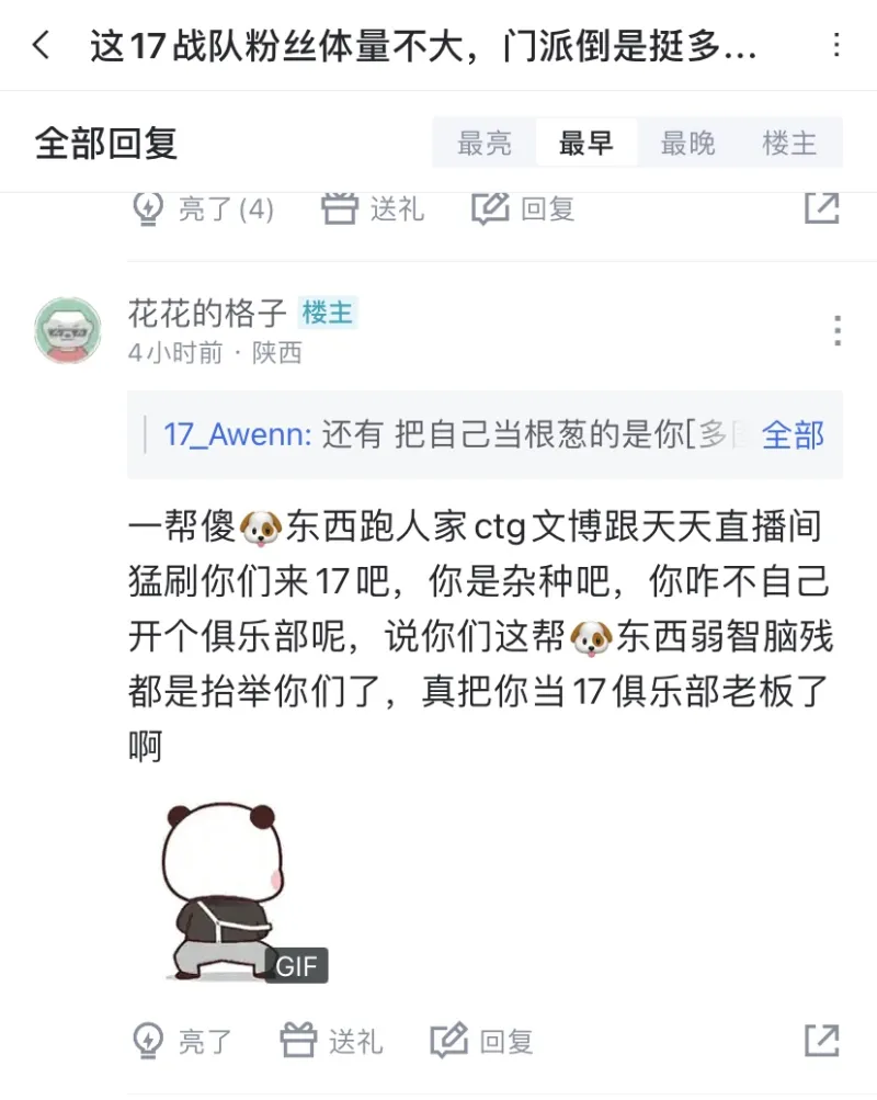 打的好有用嗎,打得好有個(gè)屁用啊,要我說(shuō)17戰(zhàn)隊(duì)這群粉也是有了哈,不是xbei在抖音收割一大波粉絲,真以為17是靠成績(jī)出名的是吧,多少人都懶得搭理17啊