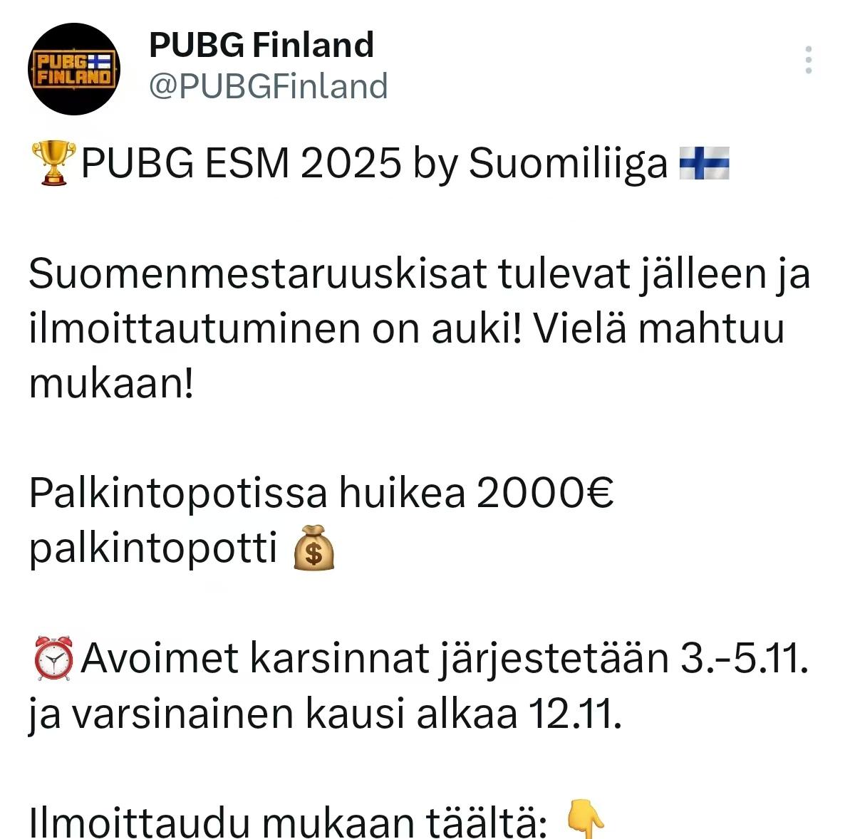 虎撲10月26日訊 PUBG芬蘭社媒更新:芬蘭錦標(biāo)賽即將來臨