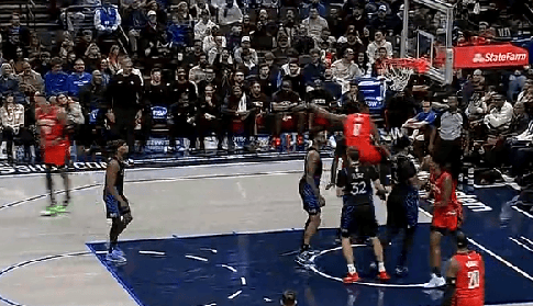 NBA常規(guī)賽,火箭客場對陣獨行俠的籃板力比賽正在進(jìn)行中。