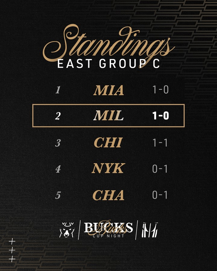 此役后,未嘗雄鹿目前NBA杯小組賽1勝0負(fù);