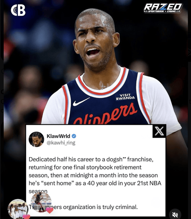 [流言板]球迷噴快船行為惡劣&希望陰陽(yáng)合同指控屬實(shí),流言羅點(diǎn)保羅點(diǎn)贊該動(dòng)態(tài)由虎撲籃球資訊 發(fā)表在籃球資訊 https://bbs.hupu.com/502