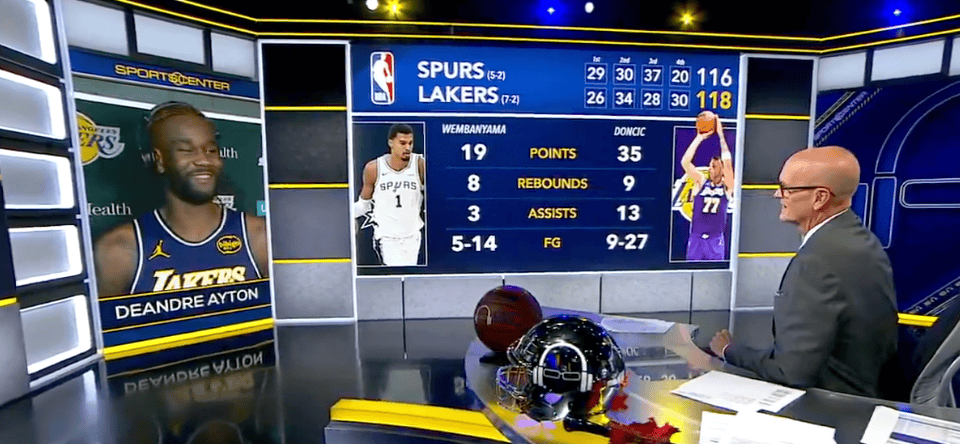 虎撲11月06日訊 NBA常規(guī)賽,湖人主場(chǎng)118-116戰(zhàn)勝馬刺。受采斯旁