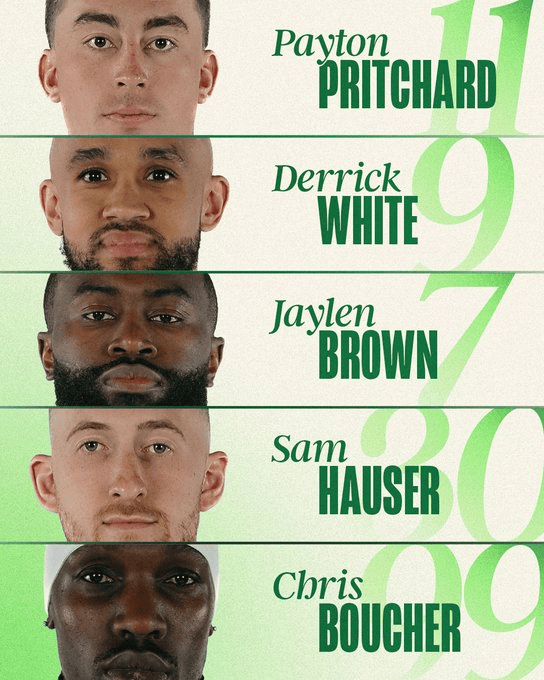 凱爾特人首發(fā)陣容:杰倫-布朗、發(fā)布薩姆-豪瑟、瑟懷德里克-懷特、特普佩頓-普里查德、克里斯-布歇