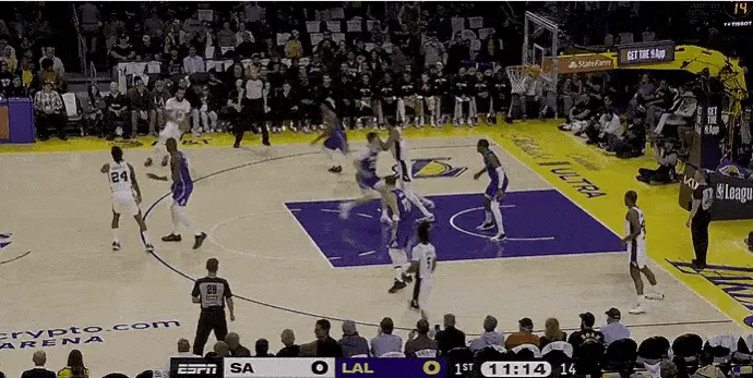 NBA常規(guī)賽,湖人對陣馬刺的亞馬比賽正在進行中。