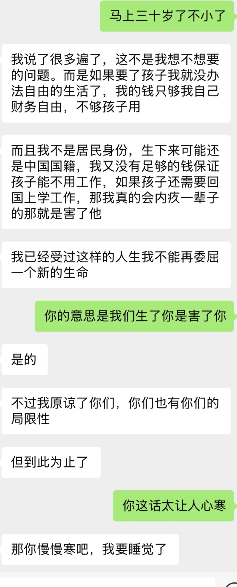 他也不是沒(méi)有錢,已經(jīng)移民并且不工作了,也不愿意卻還是生孩不肯要孩子,不知道是還指孩心寒被海外的什么思想毒害了