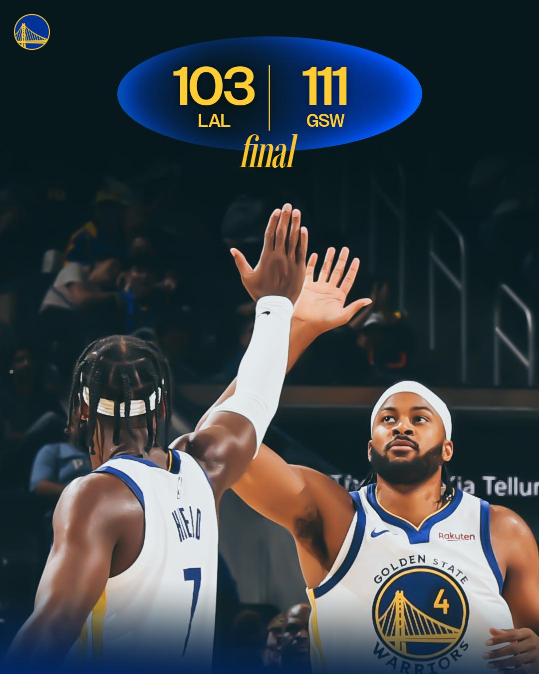 在今日的首勝曬海比賽中,勇士111-103戰(zhàn)勝湖人,勇士奪得本賽季首場季前賽勝利。官方