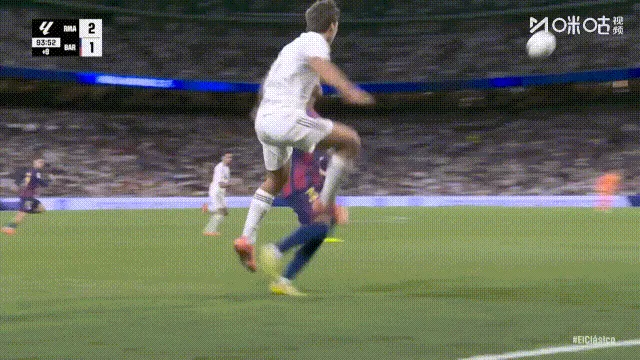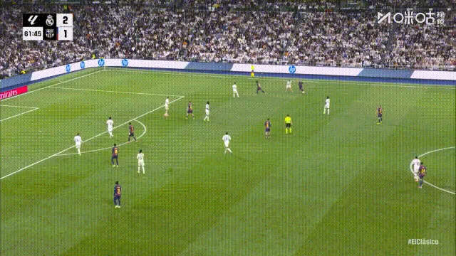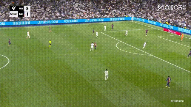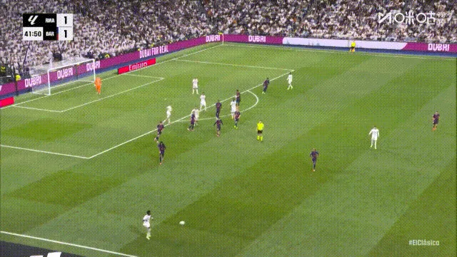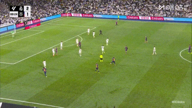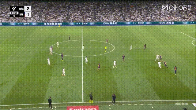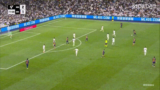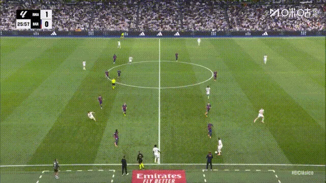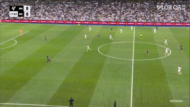 11分3C刀山球給庫巴西被迫長(zhǎng)傳,一點(diǎn)費(fèi)蘭沒頂?shù)剑c(diǎn)德容身體對(duì)抗失敗摔倒,費(fèi)爾明回挑姆巴佩遠(yuǎn)射破門半自動(dòng)介入改判越位